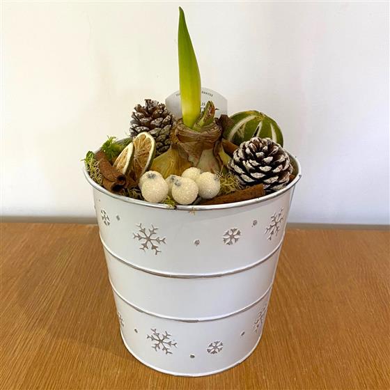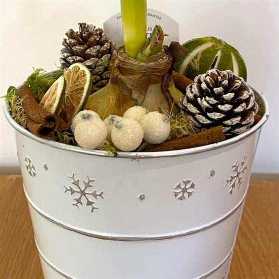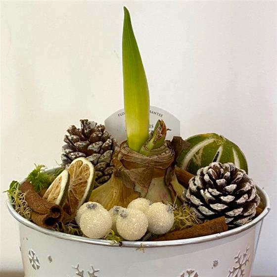 Amaryllis in snowflake tin