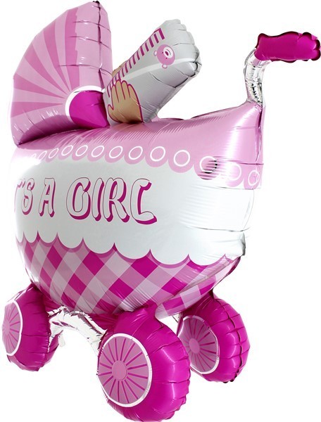 3D "It's A Boy/Girl" New baby balloon, filled with helium and decorated with curling ribbon on a balloon weight.