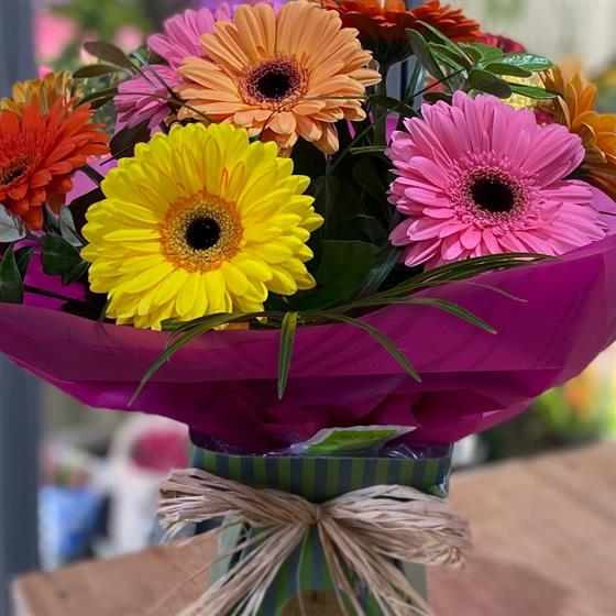 A splash of bright, vibrant Gerberas. A bouquet to brighten any occasion!