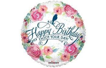 Happy Birthday Balloon- Vintage Flowers 1