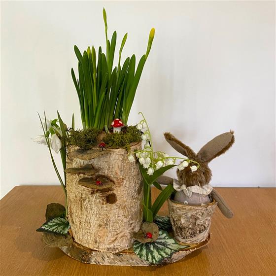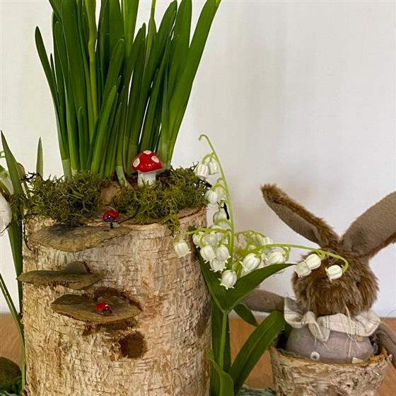Real Narcissus bulbs with silk Silk of the Valley and soft Easter bunny log design