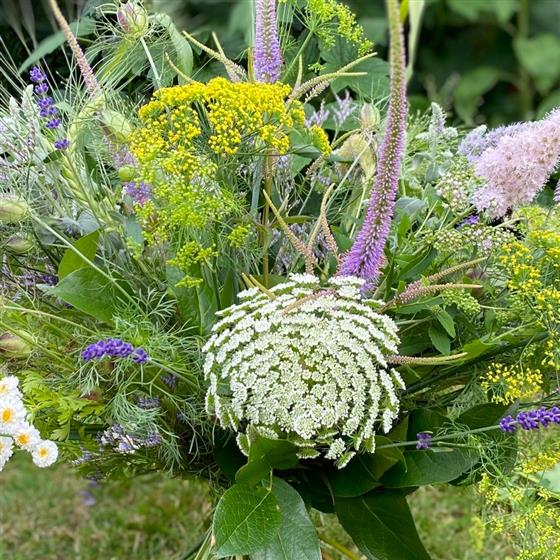 This is a beautiful class working with meadow flowers, grasses and herbs and learning the all-important skill of making a hand tied design. We will teach you how to spiral your stems and group your flowers to make a beautiful tied display ready to place into your vase at home. Once you have mastered this skill you can use it for all flowers throughout the seasons.