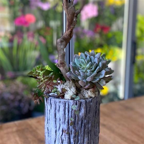 Modern Orchid and Succulent Log