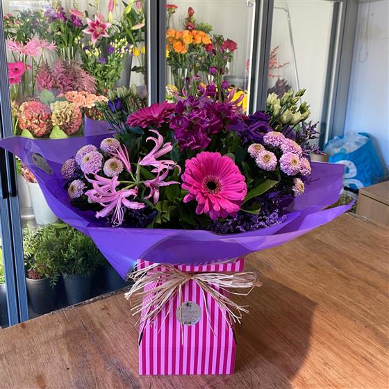 Please note that due to the seasonal availability of flowers it may be necessary to vary individual stems from those shown. Our skilled florists may substitute flowers for one similar in style, quality and value. The wrapping of our flowers will vary from the images on our website, you may specify if you would like your flowers wrapped in paper or a specific colour of cellophane, but this is not always guaranteed due to product change and availability. Where our designs include a sundry item like a Floral box, vase or basket it may not always be possible to include the exact item as displayed. If such an occasion arises we will make every effort to replace the item with a suitable alternative.