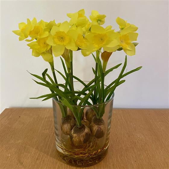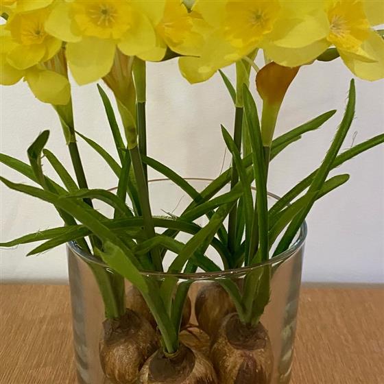 Narcissus bulbs in cylinder in resin- silk